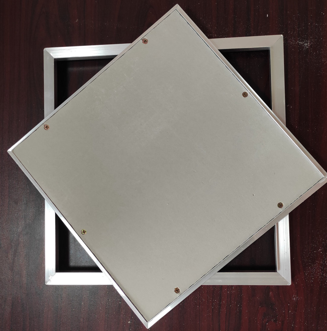 雙鋁邊框石膏檢修口也是暗藏式設(shè)計,外面是鋁合金邊框,中間是高強(qiáng)度石膏板。